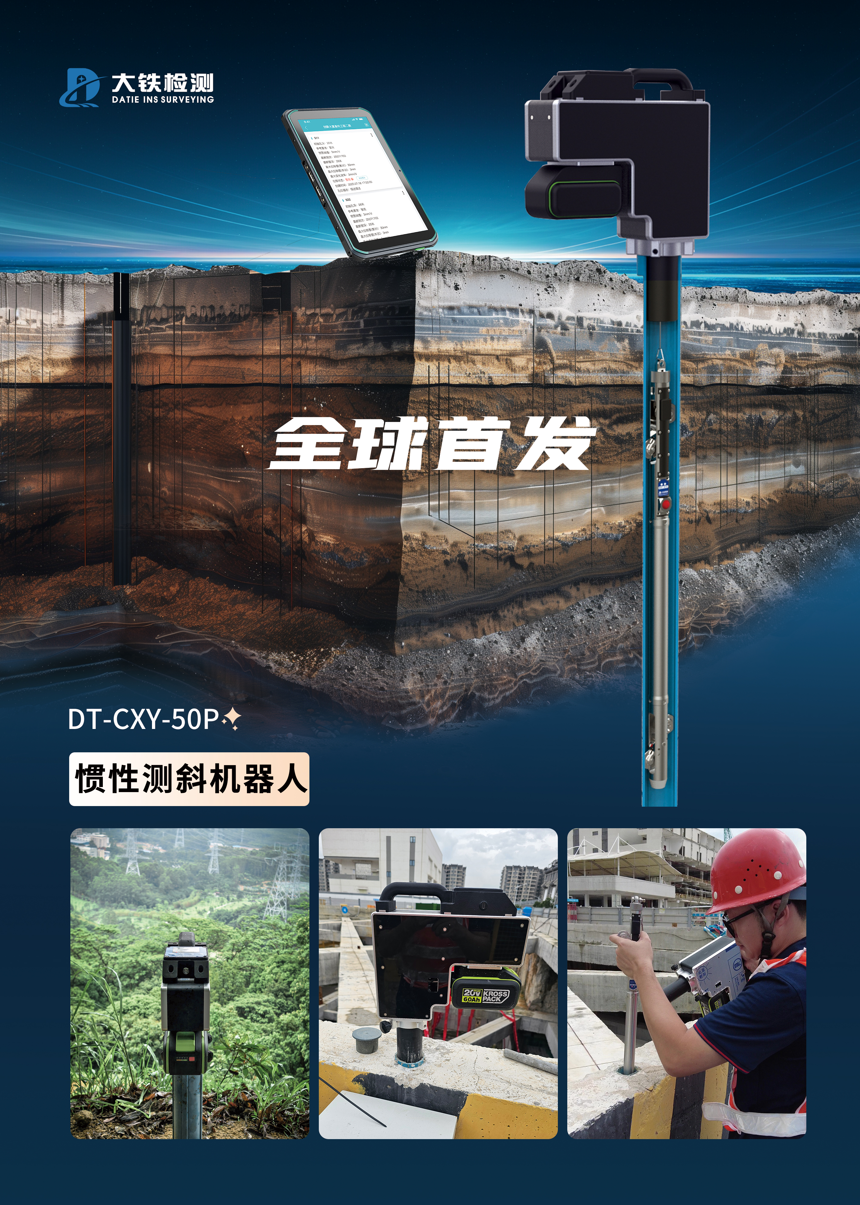作为大铁创新研发的新一代智能设备,DT-CXY-50P以全无线一体化设计颠覆传统技术,彻底摒弃牵引与通讯电缆,实现机身轻量化与便携操作,并集成智能自动化系统,一键完成高精度测量;其搭载的惯性导航技术将测斜间隔突破至毫米级,数据密度提升数十倍以上,可实时生成测斜管道三维形变曲线,精准量化平顺性及扭曲状态,从而为基坑监测、边坡监测、大坝监测等领域提供高效可靠的深层水平位移监测解决方案,重新定义智能化工程监测新标准。
