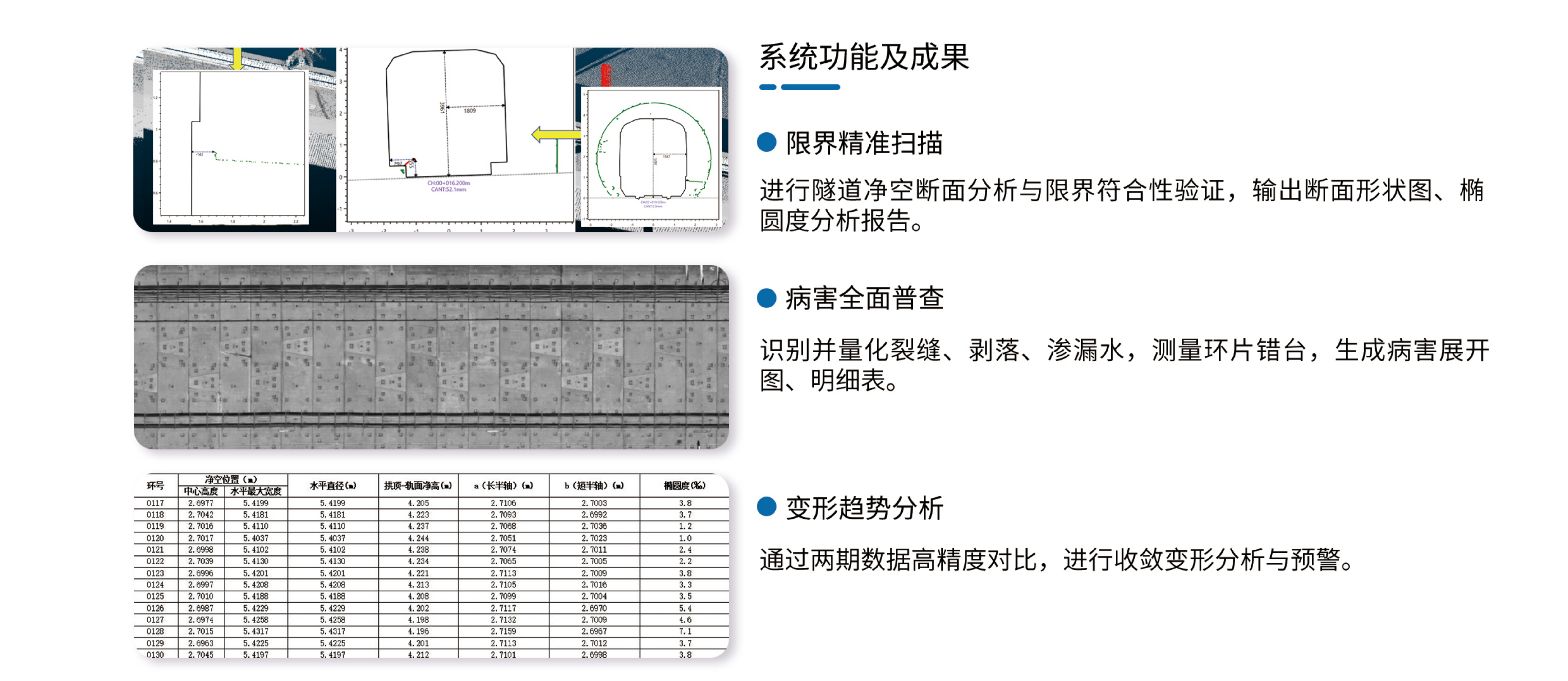 📌 用途:隧道限界检测、轨道几何测量、结构变形与影像多维输出