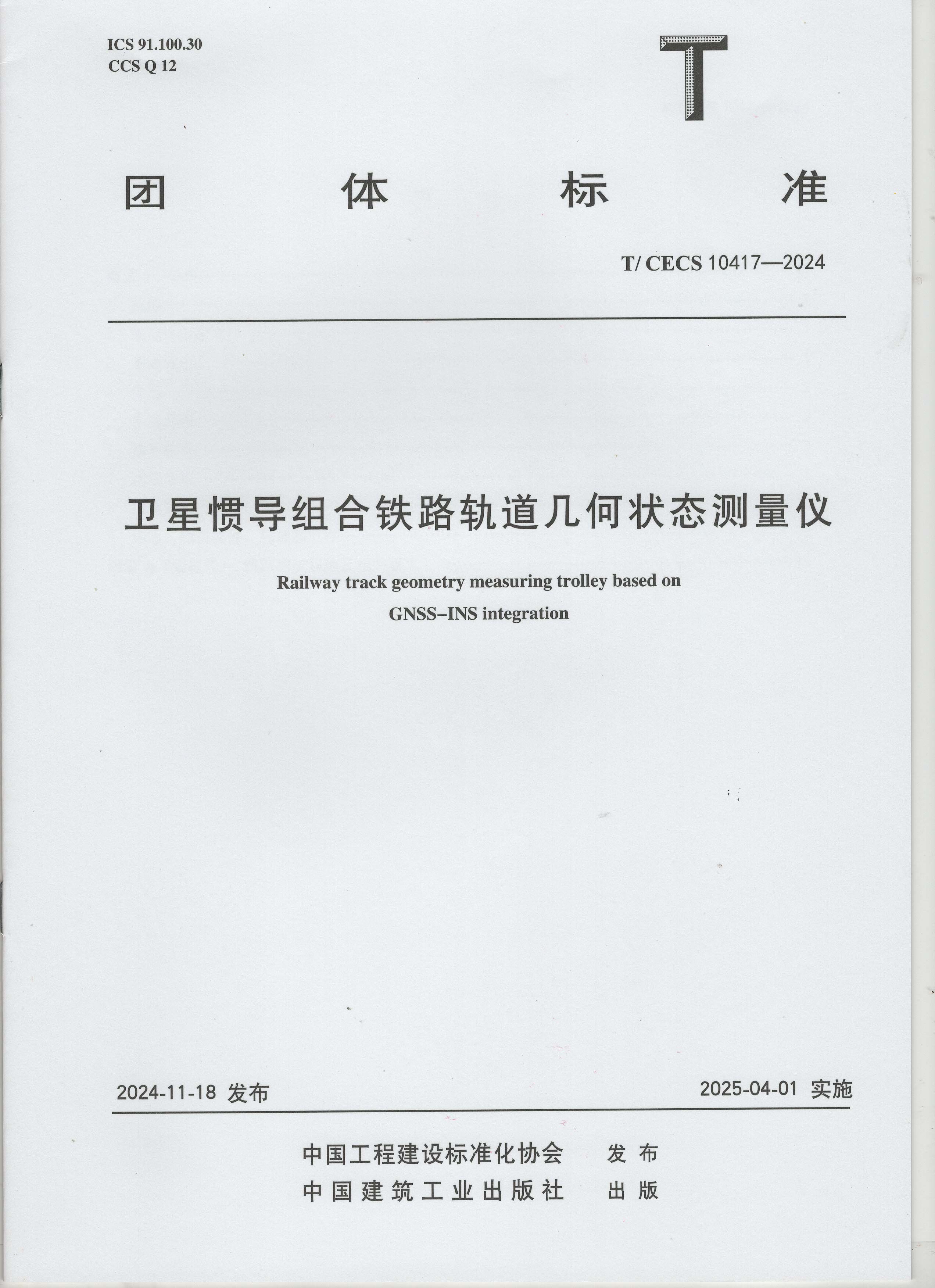 大铁检测参编的《卫星惯导组合铁路轨道几何状态测量仪》(编号为T/CECS 10417-2024)标准,即日起扫描登记,付邮费即可免费获取!数量有限,先到先得。